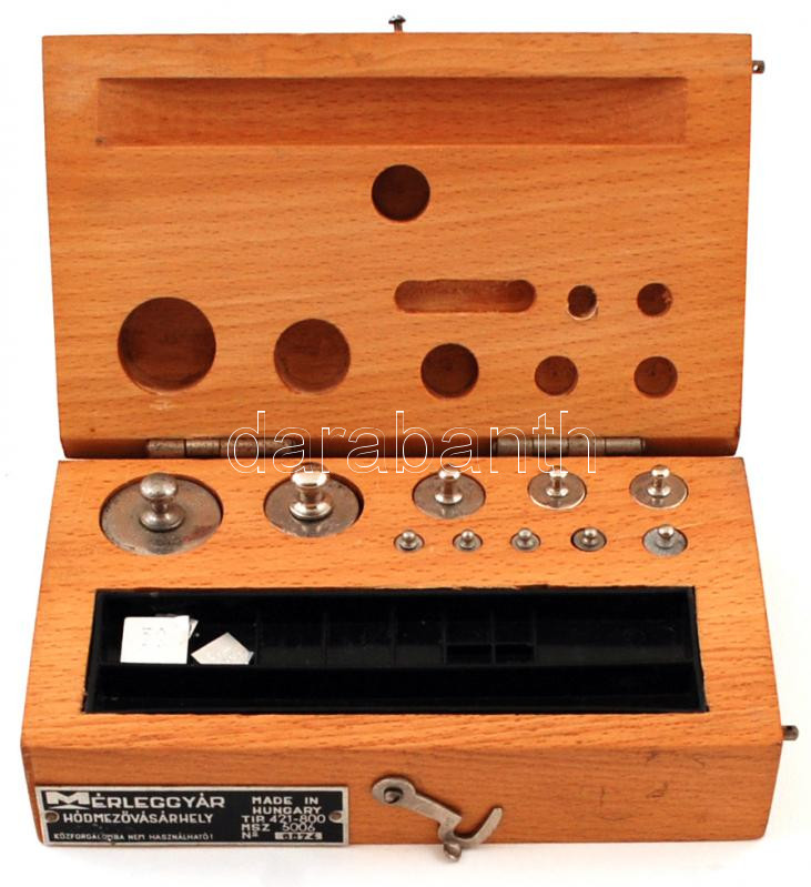 Magyar gyártmányú súlykészlet (Mérleggyár, Hódmezővásárhely), saját do... https://www.darabanth.com/de/231-Fernauktion/231.0/Andere-Sammelgebiete/Flohmarkt~600010/Magyar-gyartmanyu-sulykeszlet-Merleggyar-Hodmezovasarhely-sajat-dobozaban-hianyos~II1045799
