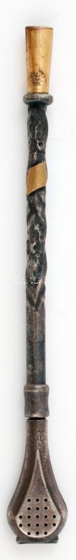 Beschreibung: Mate tea szívó, fém aranyozott véggel, jelzett (Achalay), h:19 cm