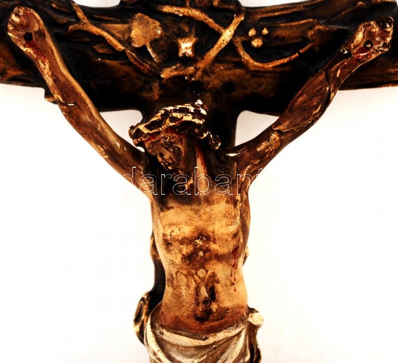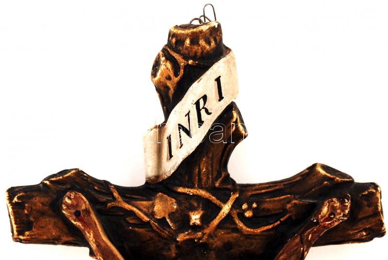 Beschreibung: Nagyméretű, díszes kerámia feszület, jelzés nélkül, apró kopásnyomokkal, hátulján kis sérüléssel, 50×24 cm