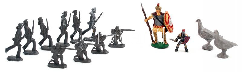 Beschreibung: Ólom figurák: 12db katona, 2db madár, 2 festett, különböző méretben