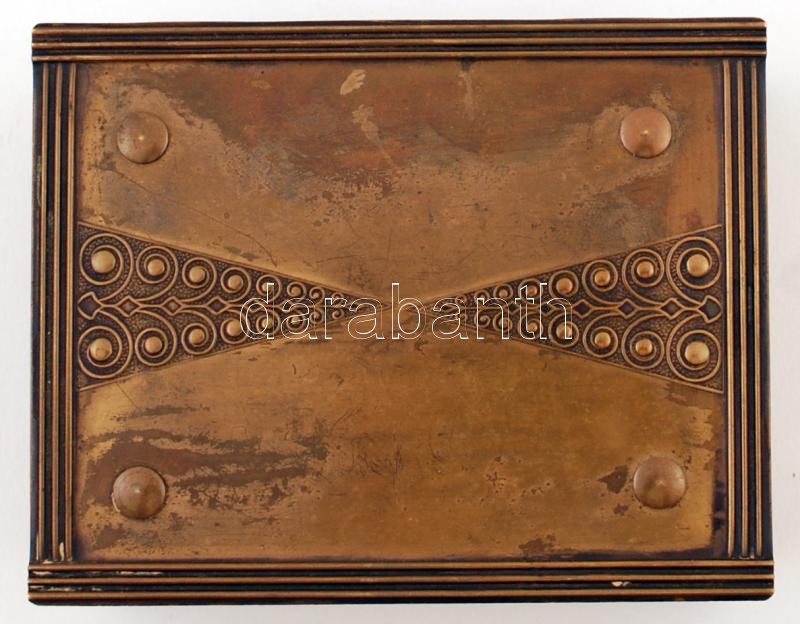 Beschreibung: Réz doboz, alján javított, jelzett, 14×10 cm