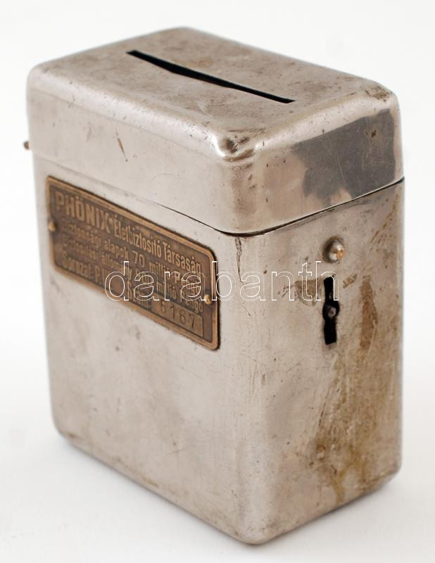 cca 1930-1940 Phönix Biztosító Társaság kulccsal zárható fém perselye,... https://www.darabanth.com/de/231-Fernauktion/231.0/Andere-Sammelgebiete/Flohmarkt~600010/cca-1930-1940-Phonix-Biztosito-Tarsasag-kulccsal-zarhato-fem-perselye-kulcs-nelkul--3Cbr~II1045278