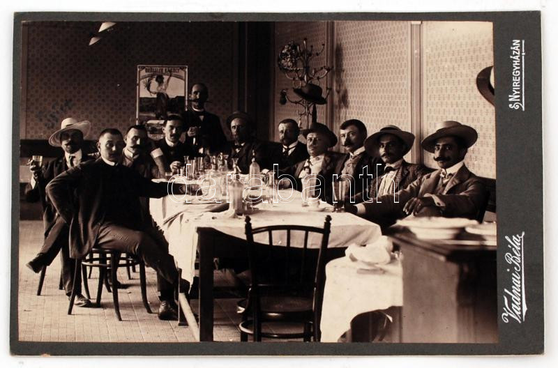 1906 Nyíregyházi vendéglői asztaltársaság, keményhátú fotó nyíregyházi... https://www.darabanth.com/de/231-Fernauktion/231.0/Andere-Sammelgebiete/Foto~600147/1906-Nyiregyhazi-vendegloi-asztaltarsasag-kemenyhatu-foto-nyiregyhazi-muterembol-Vad~II1044114