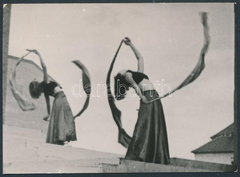 Beschreibung: 1934 Liebmann Béla (1899-1996) aláírt vintage felvétele a Szentpál csoport szegedi fellépéséről, az iskola archívumából, 6x9 cm