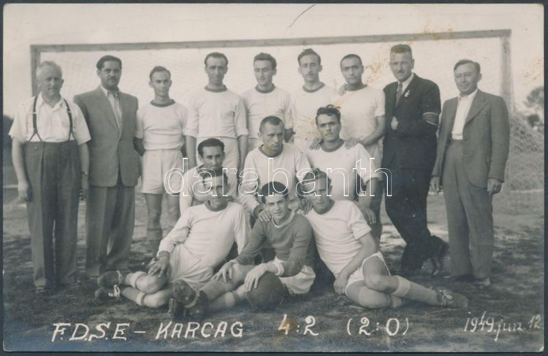 1949. junius 12. Karcagi focicsapat fotólapja, 9x14 cm https://www.darabanth.com/de/231-Fernauktion/231.0/Andere-Sammelgebiete/Foto~600147/1949-junius-12-Karcagi-focicsapat-fotolapja-9x14-cm~II1039430