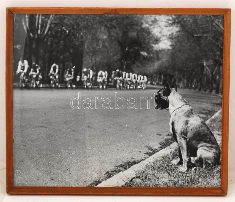 Beschreibung: A bicikliverseny lelkes közönsége, fotónagyítás, üvegezett fa keretben, 49×59,5 cm