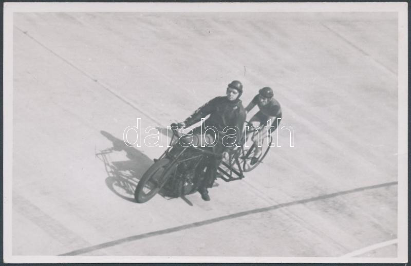 cca 1925 Kerékpár versenyző, a légellenállást csökkentő felvezető moto... https://www.darabanth.com/de/231-Fernauktion/231.0/Andere-Sammelgebiete/Foto~600147/cca-1925-Kerekpar-versenyzo-a-legellenallast-csokkento-felvezeto-motorossal-fotolap-9x1~II1039272