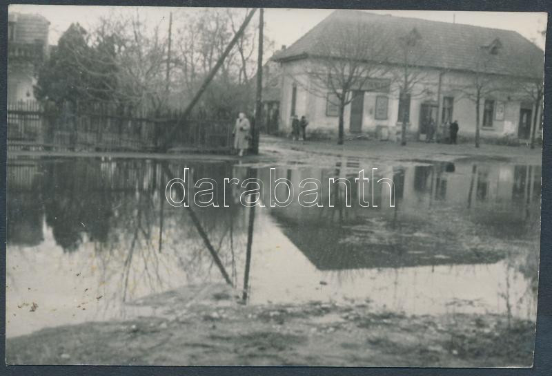 Beschreibung: cca 1950 "Csillaghegy szégyenfoltja és pöcegödör a Közért mellett", feliratozott dokumentumfotó, 6x9 cm