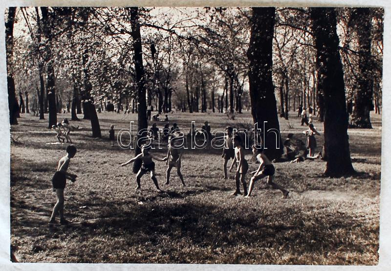 Beschreibung: cca 1950 Körmendy Imre: Vasárnap a Ligetben. Jelzett vintage fotó. Kiállításon szerepelt. 28x41 cm