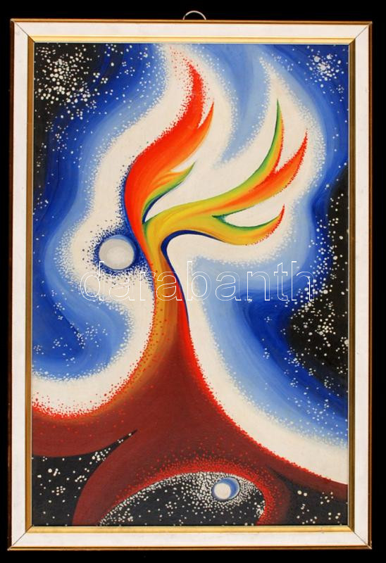 Beschreibung: Jelzés nélkül: Sarki fény, olaj, farost, keretben, 29,5×19 cm
