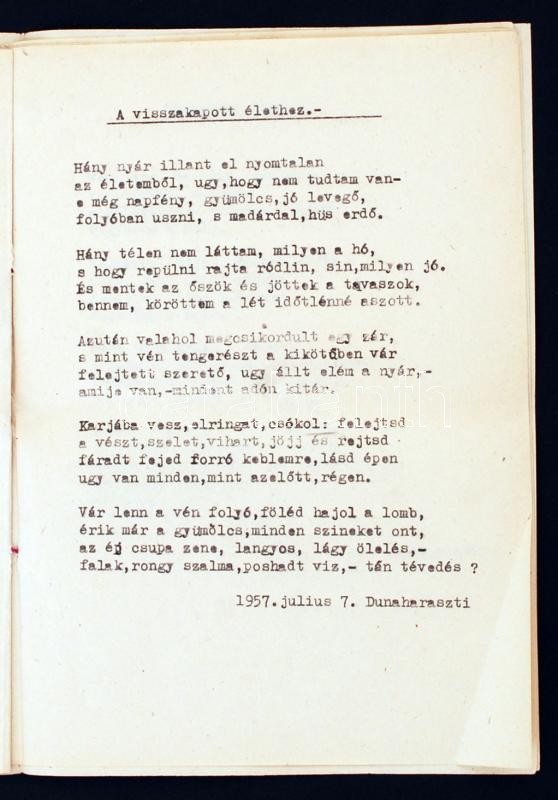 Beschreibung: 1956-1958 Álnéven író, 56-os elitélt versei. Kézirat. 28p. 9 vers