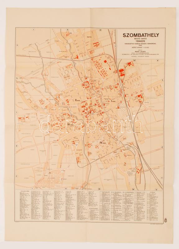 1942 Szombathely megyei város térképe kiegészítve Kámon község térképével. Kiadja: Nagy Lajos. M. kir. Honvéd Térképészeti Intézet. 50x70 cm Szép állapotban