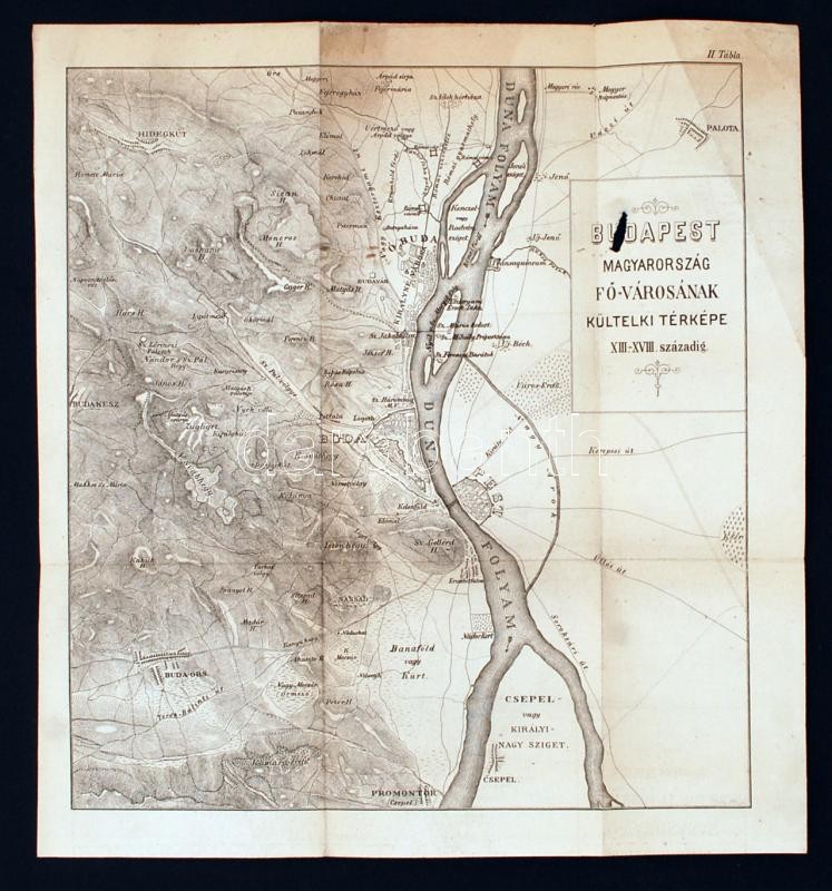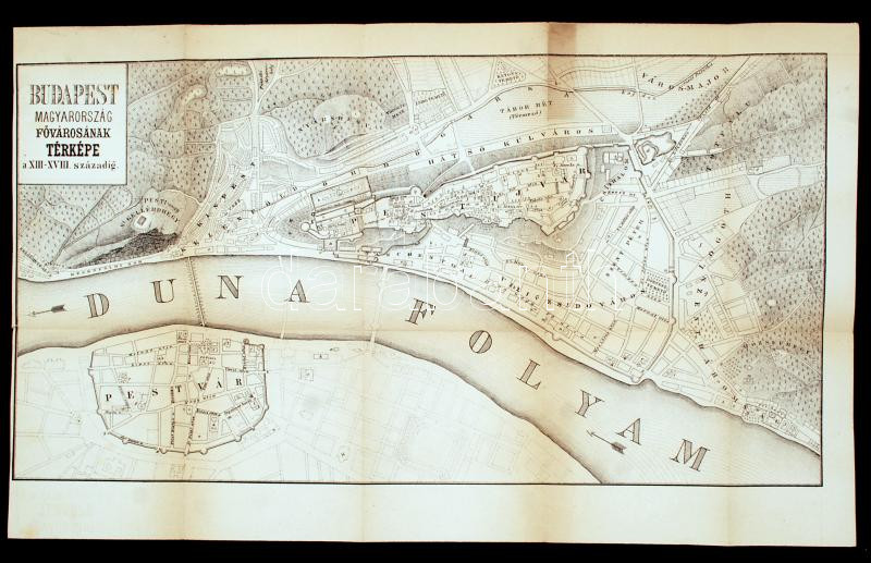 Budapest Magyarország fővárosának térképe XIII.-XVIII. századig. 2 db nagyméretű, kőnyomatos térkép. Megjelent: Rupp Jakab Buda-Pest és környékének helyrajzi története