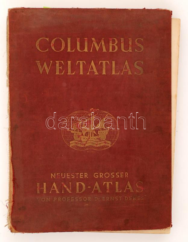Debes, Ernst dr.: Columbus Weltatlas. Neuster grosser Hand- Atlas von professor - - Neubearbetet von dr. Hans Fischer. Berli, Leipzig, 1935, Columbus Verlag. Kiadói egészvászon kötésben, elvált fedőlappal, gerinc nélkül.
