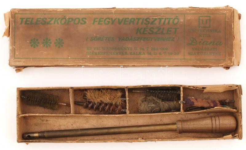 Unitechnika KTSZ. Diana Vadászati szaküzletek Teleszkópos fegyvertiszt... https://www.darabanth.com/de/231-Fernauktion/231.0/Andere-Sammelgebiete/Militaria~600025/Unitechnika-KTSZ-Diana-Vadaszati-szakuzletek-Teleszkopos-fegyvertisztito-keszlet-soretes-~II1038877