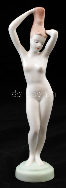 Beschreibung: Aquincumi porcelán női akt, kézzel festett, jelzett / Hand painted porcelain female nude, m: 23cm