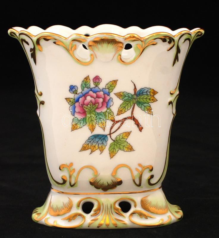 Beschreibung: Herendi Viktória mintás áttört porcelán váza, kézzel festett, jelzett, hibátlan, m: 12 cm