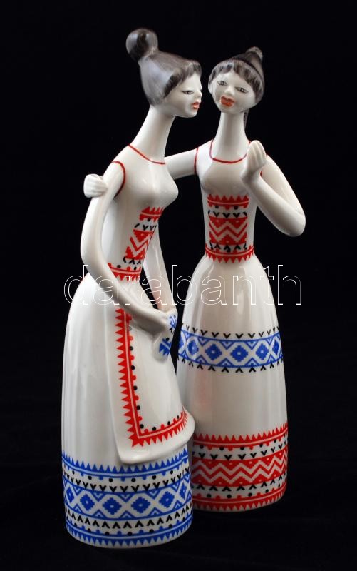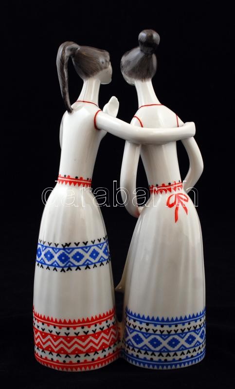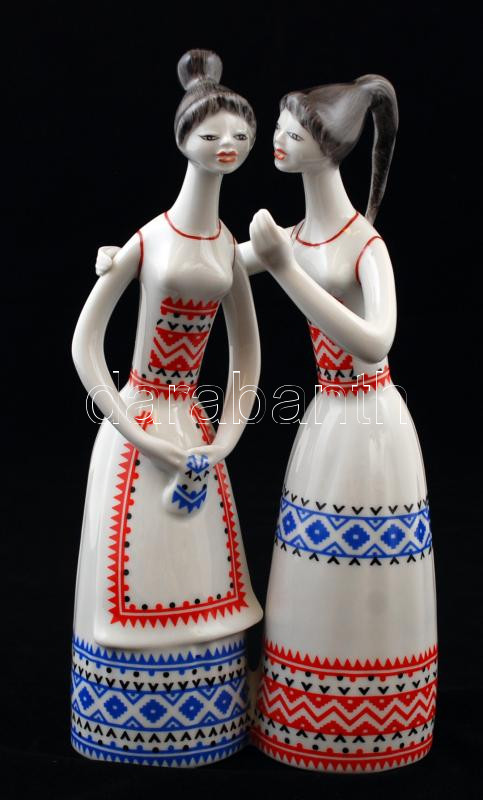 Beschreibung: Hollóházi népviseletes lányok, kézzel festett, hibátlan, jelzett, m: 24 cm