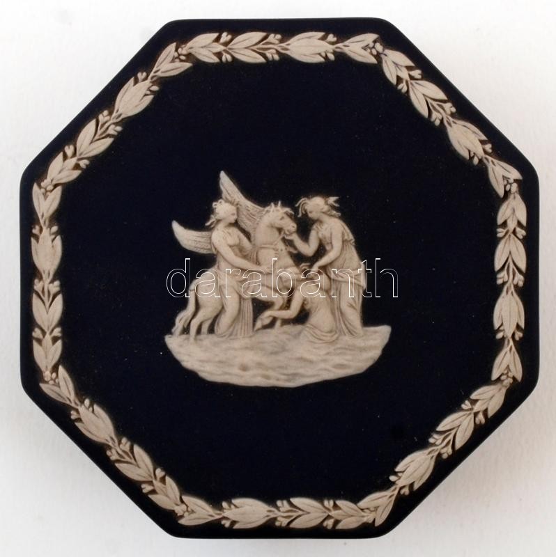 Beschreibung: Wedgwood kék-fehér nyolcszög alakú biszkvit porcelán dobozka, hibátlan, jelzett, 11x11x5 cm