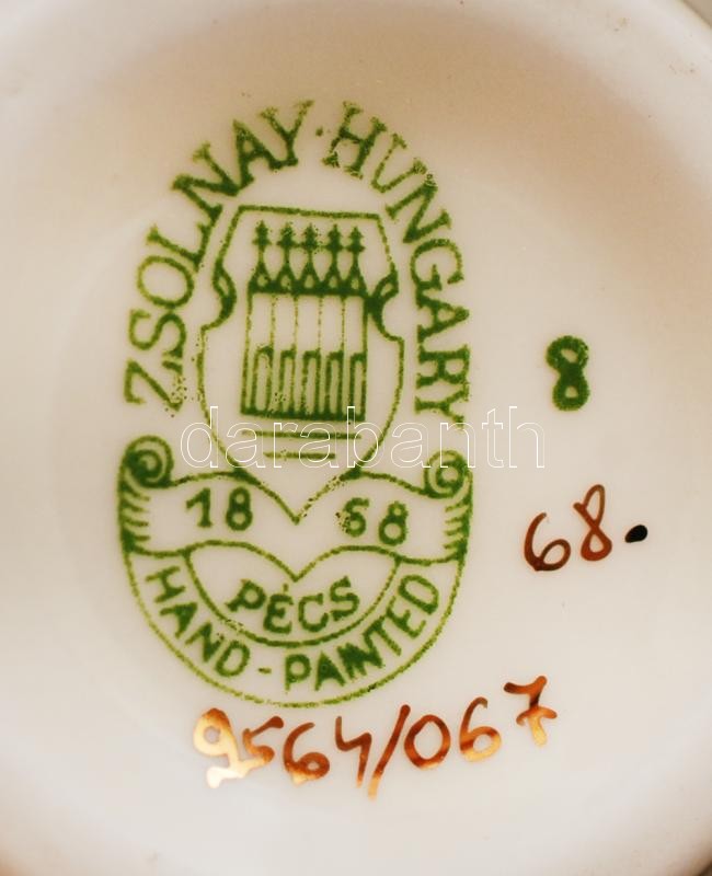 Zsolnay kis váza, kézzel festett, jelzett, hibátlan, m:13 cm https://www.darabanth.com/de/231-Fernauktion/231.0/Andere-Sammelgebiete/Porzellan~600006/Zsolnay-kis-vaza-kezzel-festett-jelzett-hibatlan-m13-cm~II1038398