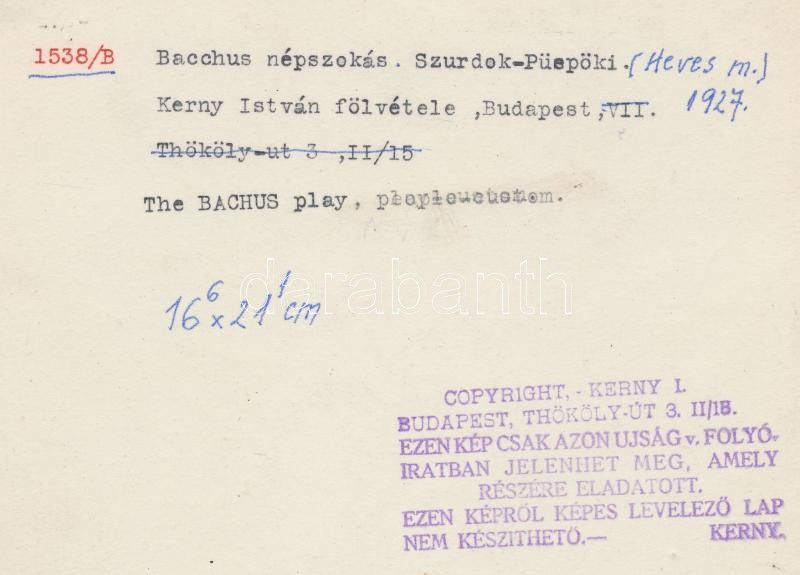 cca 1930 Szurdok-Püspöki, Bachus népszokás, pecséttel jelzett vintage ... https://www.darabanth.com/de/231-Fernauktion/231.0/Andere-Sammelgebiete/Signatur~600018/cca-1930-Szurdok-Puspoki-Bachus-nepszokas-pecsettel-jelzett-vintage-foto-Kerny-Istvan-1879~II1038480