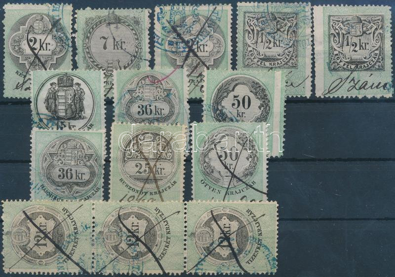 Beschreibung: 1868 14 db okirati illetékbélyeg "STEMPEL-MARKEN" vízjel a bélyegen (ritka)