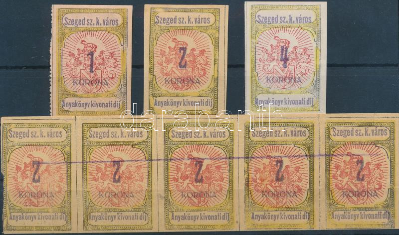 1918 Szeged városi illetékbélyeg 1K, 2K, 4K + 2K ötöscsík https://www.darabanth.com/de/231-Fernauktion/231.0/Andere-Sammelgebiete/Stempelmarken~600014/1918-Szeged-varosi-illetekbelyeg-1K-2K-4K-plus-2K-otoscsik~II1045645