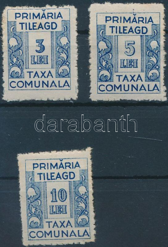 Beschreibung: 193... Mezőtelegd városi illetékbélyeg 3Lei, 5Lei, 10Lei teljes sor
