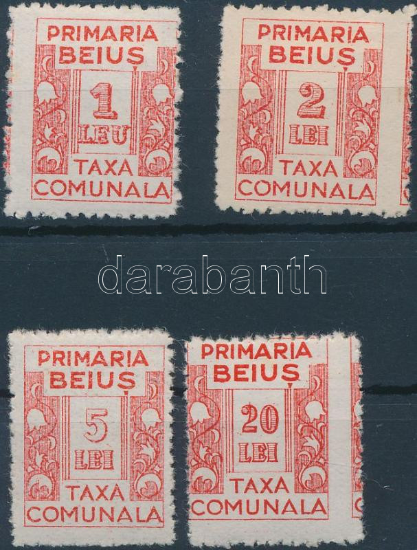Beschreibung: 1939 Belényes városi illetékbélyeg 1Lei, 2Lei, 5Lei, 20Lei (ritka)