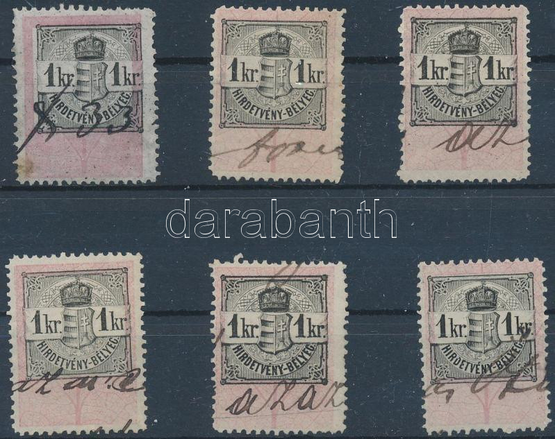 Beschreibung: 6 db 1kr Hirdetvénybélyeg