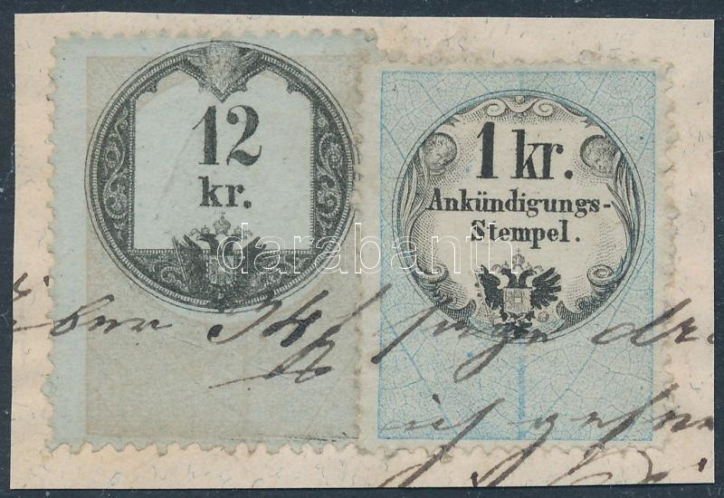 Beschreibung: Okmánybélyeg és Hirdetménybélyeg vegyes felhasználás kivágáson