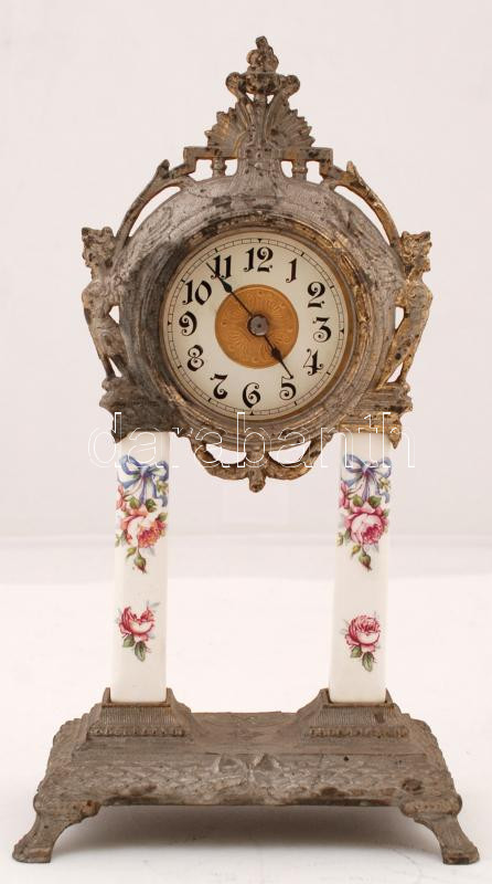 cca 1930 Mechanikus fém kandalló óra virágokkal díszített matricás ker... https://www.darabanth.com/de/231-Fernauktion/231.0/Andere-Sammelgebiete/Uhren~600008/cca-1930-Mechanikus-fem-kandallo-ora-viragokkal-diszitett-matricas-keramia-oszlopokkal-muk~II1044228