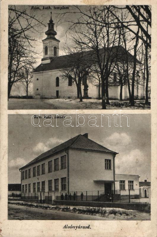 Alsónyárasd, Római katolikus templom és iskola / school, church (fl) https://www.darabanth.com/de/231-Fernauktion/231.0/Ansichtskarten/Slowakei~7/Alsonyarasd-Romai-katolikus-templom-es-iskola-school-church-fl~II643381