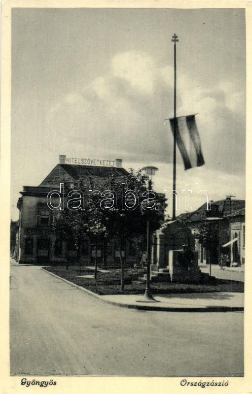 Gyöngyös, Országzászló, hitelszövetkezet https://www.darabanth.com/de/231-Fernauktion/231.0/Ansichtskarten/Ungarn~5/Gyongyos-Orszagzaszlo-hitelszovetkezet~II1046243
