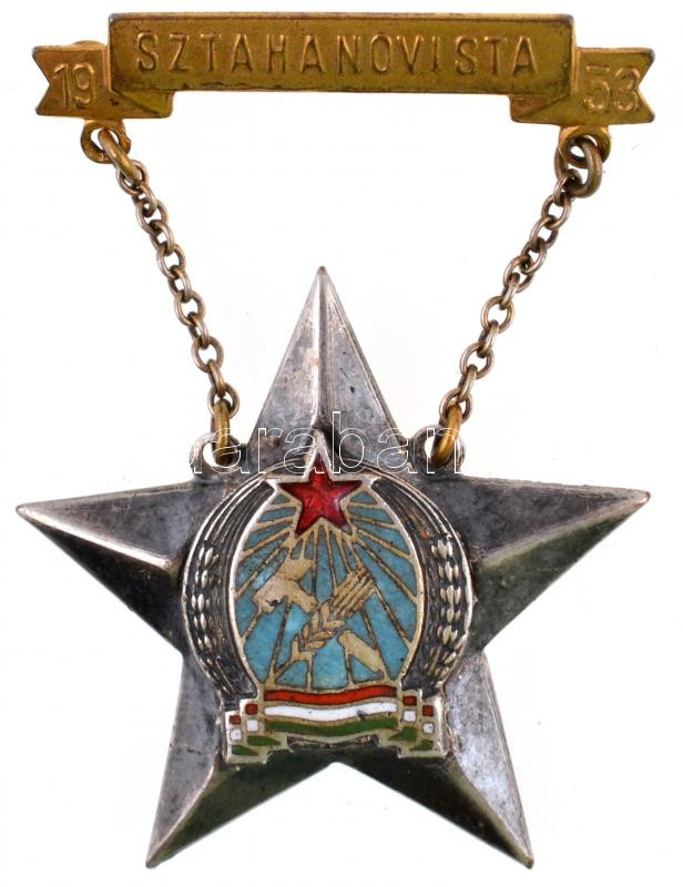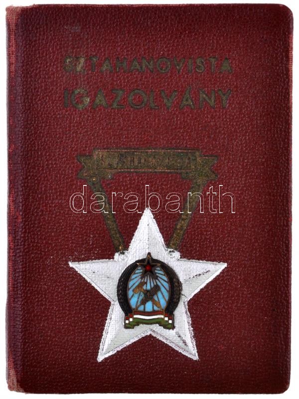 Beschreibung: 1953. "Sztahanovista" zománcozott fém kitüntetés, eredeti tokban, igazolvánnyal T:2