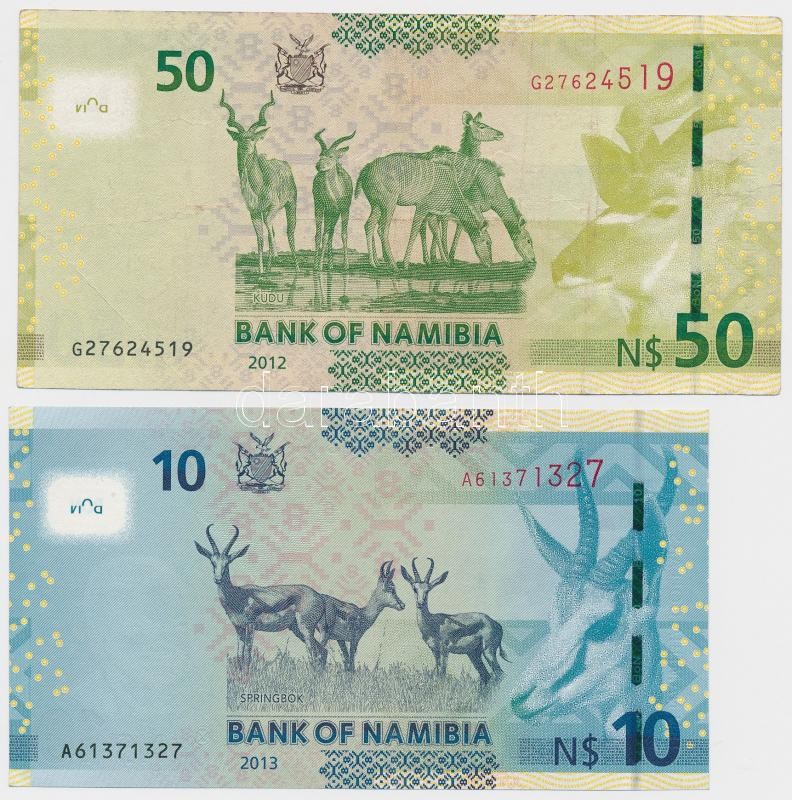 Namibia 2012. 50 Dollars + 2013. 10 Dollars C:F,XF