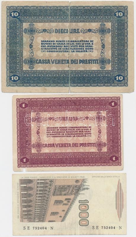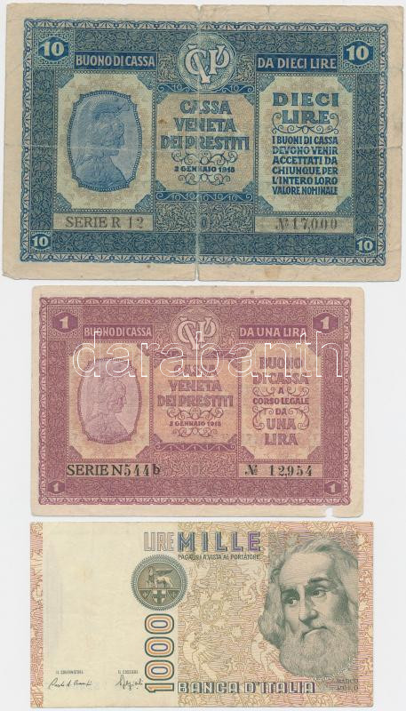 Beschreibung: Olaszország/Velence/Osztrák-magyar megszállás 1918. 1L + 10L + Olaszország 1982. 1000L T:III,III-
