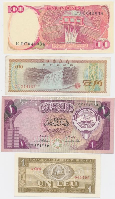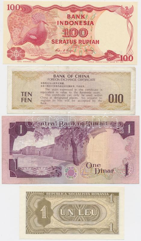 Mixed: Indonesia 1984. 100 Rupiah + China / Foreign Exchange Certificate 1979. 5 Yüan + Kuwait 1968. 1 1 Dinar + Romania 1966. 1 Leu C:mixed