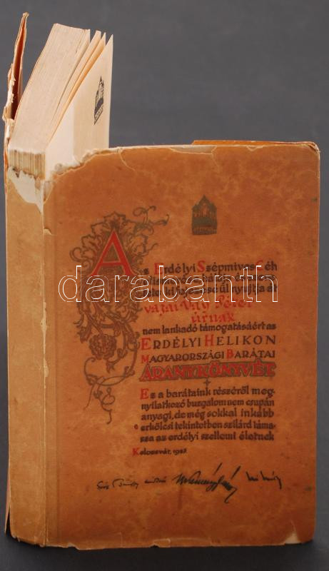 Az Erdélyi Helikon Magyarországi Barátainak aranykönyve 1937. Kolozsvá... https://www.darabanth.com/de/232-Fernauktion/232.0/Andere-Sammelgebiete/Bucher-Sonstige-Raritaten~400039/Az-Erdelyi-Helikon-Magyarorszagi-Baratainak-aranykonyve-1937-Kolozsvar-Erdelyi-Szepmives-C~II1054338