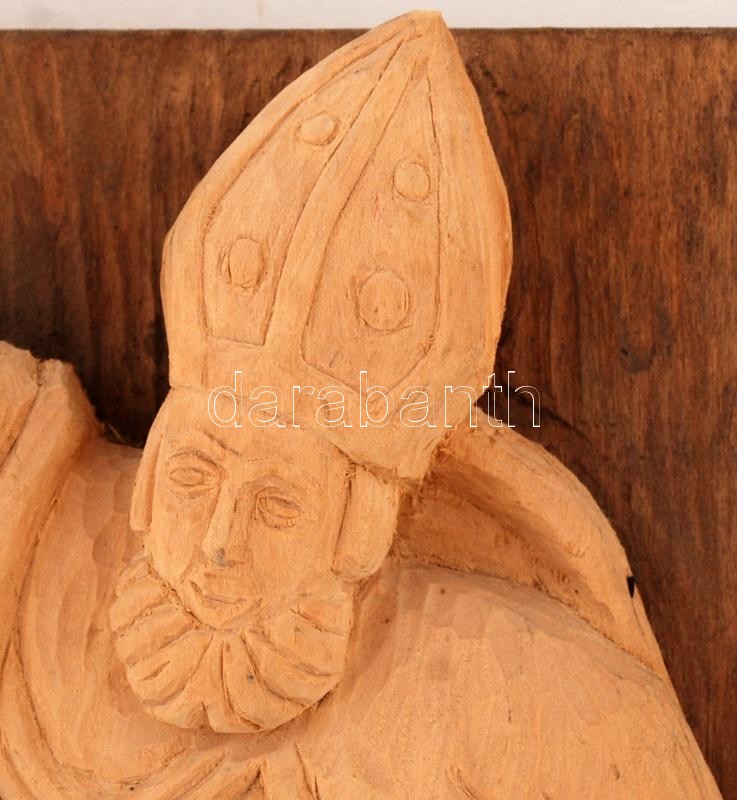 Beschreibung: B.D.: Stent Orbán (a szőlő védőszentje)fafaragás, jelzett, 34x18cm