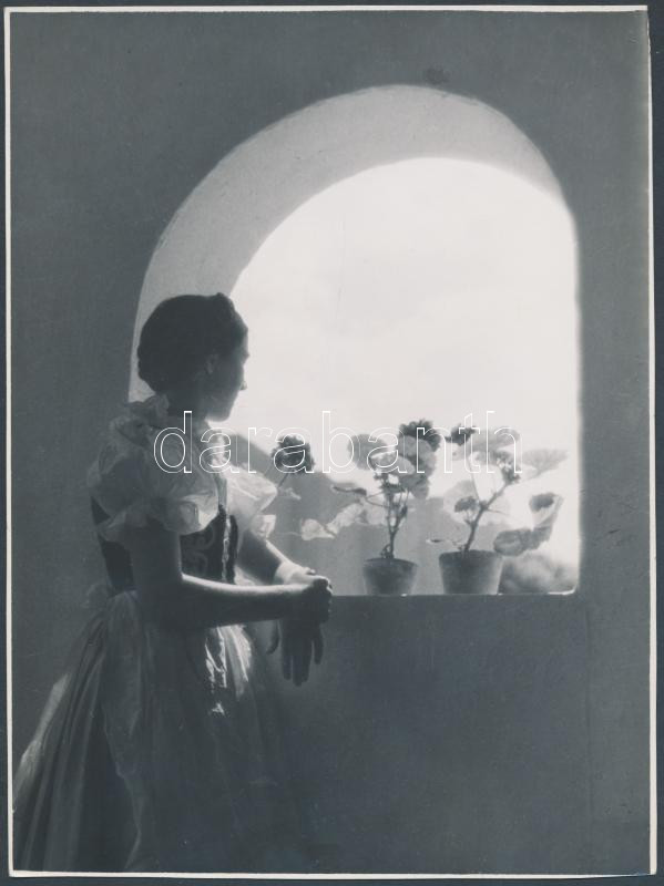 1937 Korschelt Miklós (1900-1982): Merengés, aláírt vintage fotóművészeti alkotás, amely diplomát kapott a svájci Camera nemzetközi fotókiállításon, emlékjeggyel jelölve, 23x17 cm