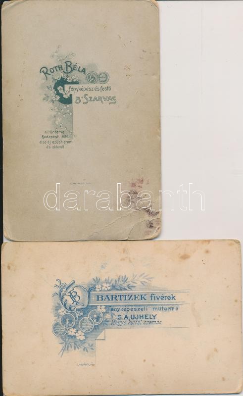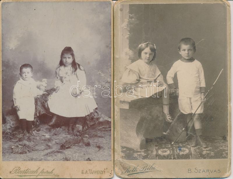 cca 1860-1900 Korabeli,nagyméretű, keményhátú családi fotók, különböző vidéki magyar városokból:Roth (B. Szarvas), Conradh (Czegléd), Bartizek (S.A. Ujhely), Bárdos (Miskolcz) 4db, cca17x11cm