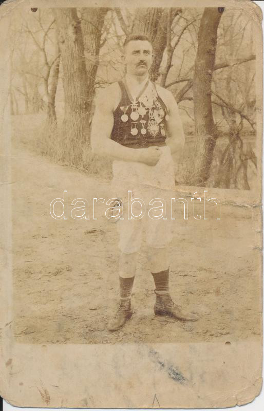 cca 1910 Sok kitüntetést nyert sportoló fotója, fotólap, kis sérülésse... https://www.darabanth.com/de/232-Fernauktion/232.0/Andere-Sammelgebiete/Foto~400029/cca-1910-Sok-kituntetest-nyert-sportolo-fotoja-fotolap-kis-serulessel-hatuljan-felirato~II1055193