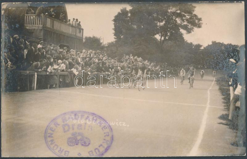 cca 1925 A brünni kerékpárklub versenyén, bizonyára magyar versenyzők is szerepeltek, mert egy magyar kerékpárversenyző hagyatékából került elő a fotólap, 9x14 cm