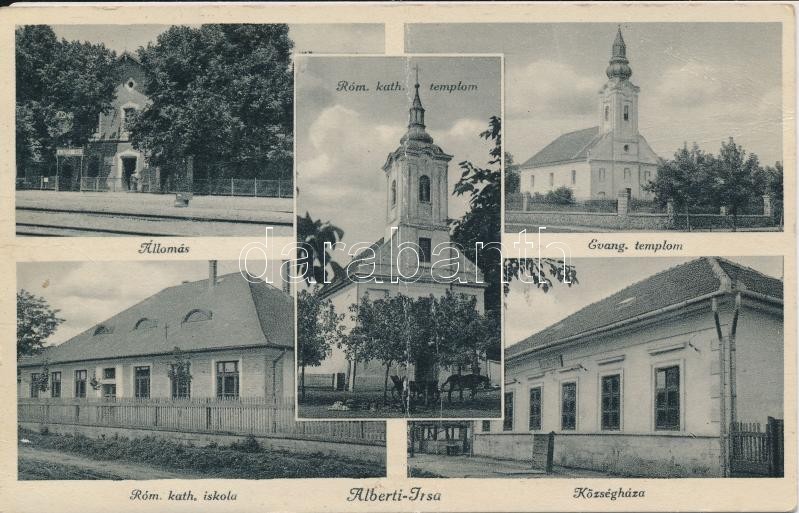 Beschreibung: cca 1930 Albertirsa képeslap a hozzá készült fotók eredeti negatív és pozitív felvételeivel, köztük a vasútállomás