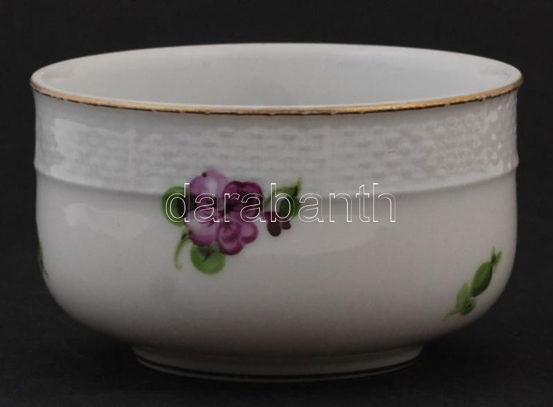 Beschreibung: Virágmintás Herendi porcelán bonbonier, kézzel festett, jelzett, kis kopásnyomokkal, a teteje hiányzik, d: 8,5 cm