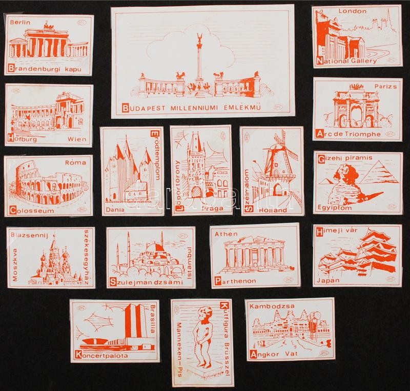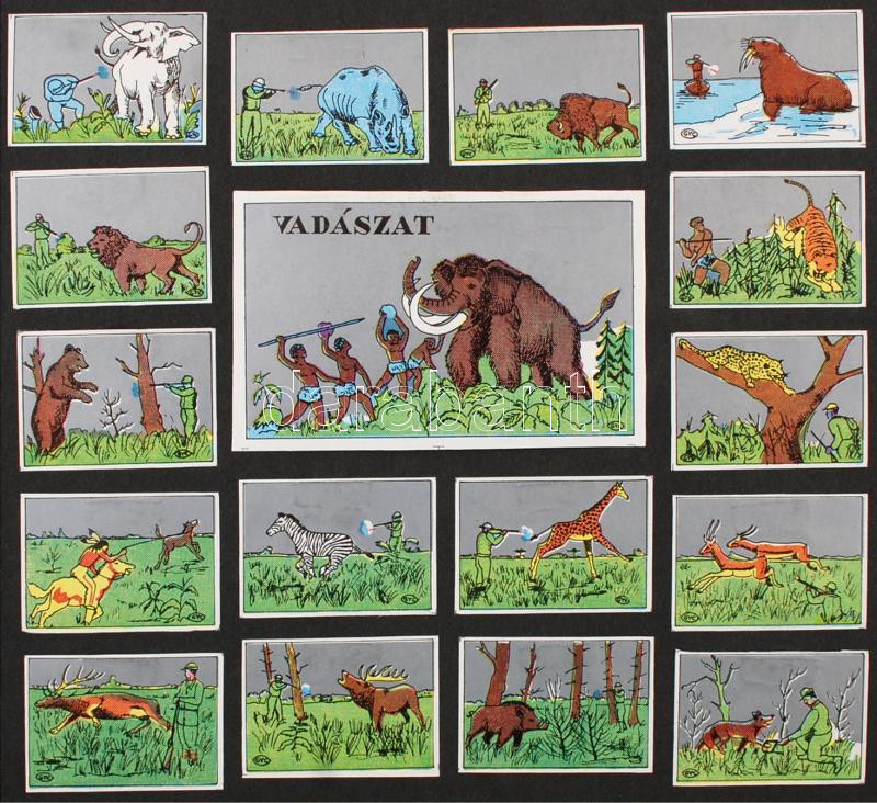Beschreibung: Nagy gyufacímke tétel, különféle motívumokkal: vadászat, sport, futball, természet, városok, stb., kartonlapokra ragasztva, összesen kb. 3400 db