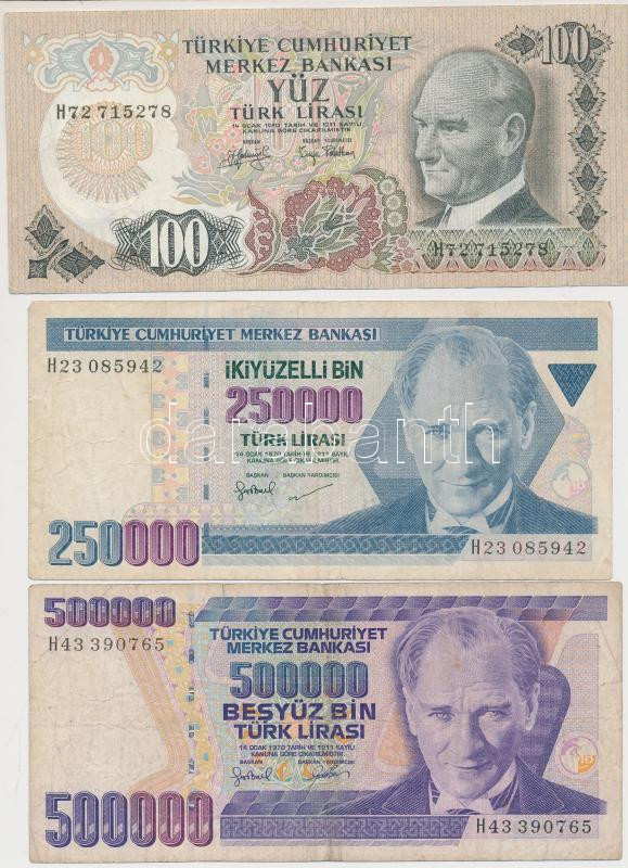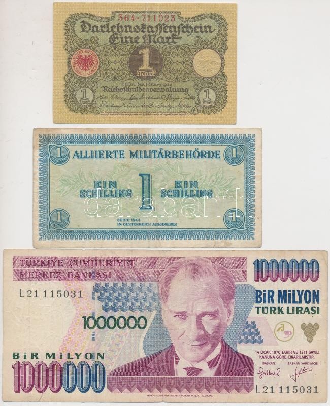 Beschreibung: Vegyes: Németország / Weimari Köztársaság 1920. 1M + Ausztria / Szövetséges megszállás 1944. 1Sch + Törökország 1970. 100L + 250.000L + 500.000L + 1.000.000L T:III