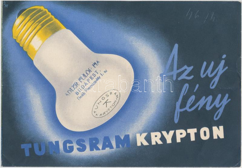cca 1936-1940 "Miért új fény a krypton fény?" A Tungsram krypton lámpa... https://www.darabanth.com/de/233-Fernauktion/233.0/Andere-Sammelgebiete/Drucksachen~400042/cca-1936-1940-Miert-uj-feny-a-krypton-feny-A-Tungsram-krypton-lampa-reklamos-szorolapja~II1059646