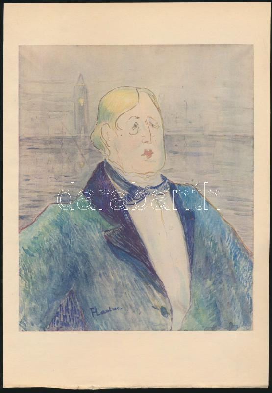 Henri Toulouse-Lautrec: Oscar Wilde portréja, akvarellel színezett heliogravűr, Henri Floury kiadása, Párizs, jelzett a heliogravűrön, paszpartuban, 19,5×16 cm